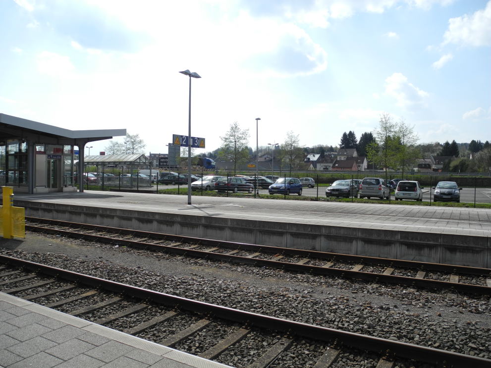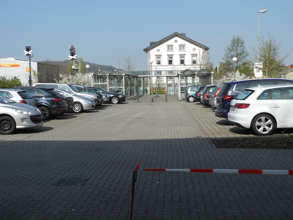 Wer mit dem Auto kommt, findet zahlreiche Parkplätze: vor dem Gebäude, seitlich vor der Fahrradabstellanlage sowie auf der anderen Seite der Gleise. Von dort gelangt man direkt zur Unterführung und den Bahnsteigen.