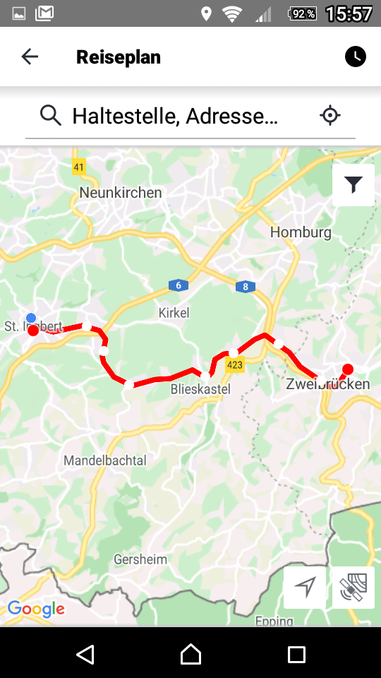 Juni 2021: Haltepunkt im DB Navigator ... und bei www.saarfahrplan.de