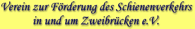 Wir bemühen uns seit geraumer Zeit diese Bestrebungen voran zu treiben. Machen Sie mit, machen Sie unsere Ideen und Überzeugungen zu den Ihren. Werden auch Sie Mitglied im "Verein zur Förderung des Schienenverkehrs in und um Zweibrücken e.V"