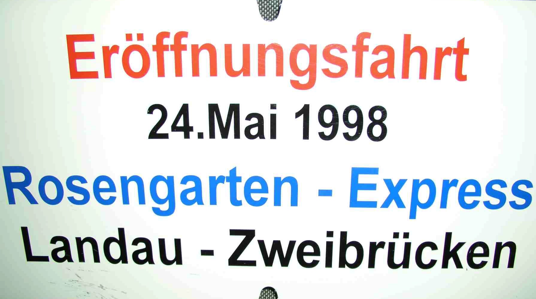 Eine Neuerung im Jahr 1998 war der „Rosengarten-Express“ zwischen Landau und Zweibrücken. Gezogen wurde er von einer 218er Lok.