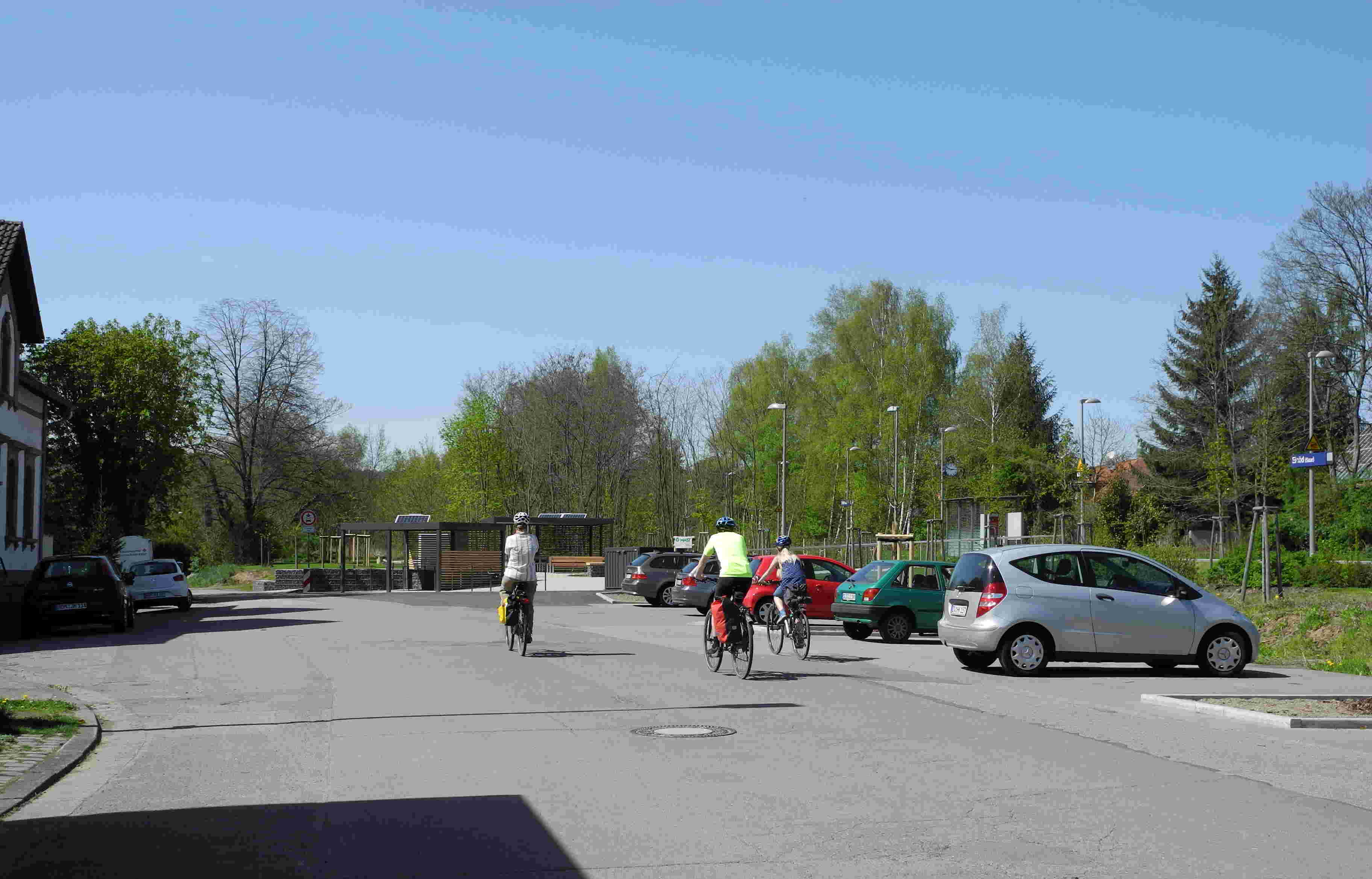 Oben: Wiegehäuschen | Viel Asphalt | Ein Radfahrer sucht den Weg nach Luxemburg. Der Fotograf konnte den Weg zum Glan-Blies-Radweg erklären. Eine Karte wäre hilfreich - demnächst?