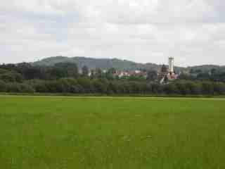 Blick vom Bliestal auf Beeden mit der Kirche St. Remigius