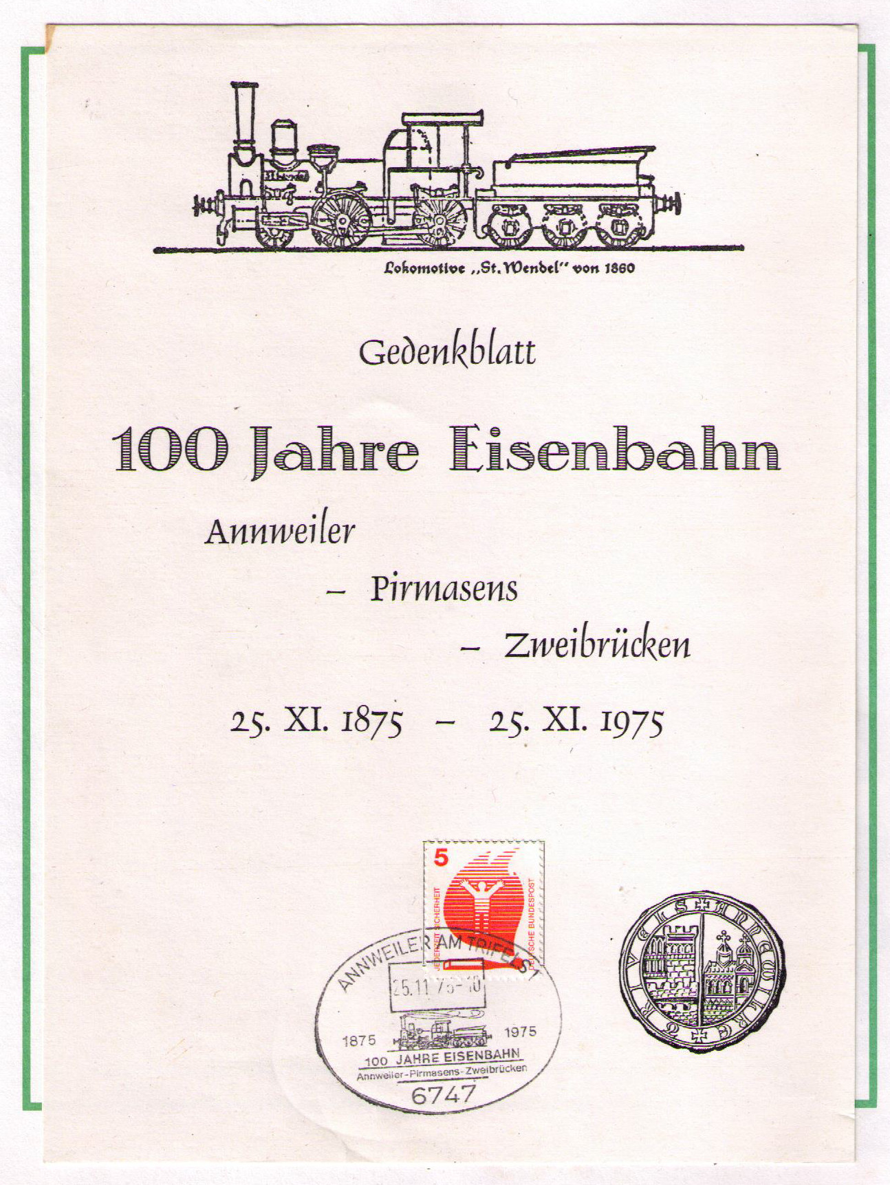 25.11.1975 100 Jahre Eisenbahn Annweiler - Pirmasens - Zweibrücken
