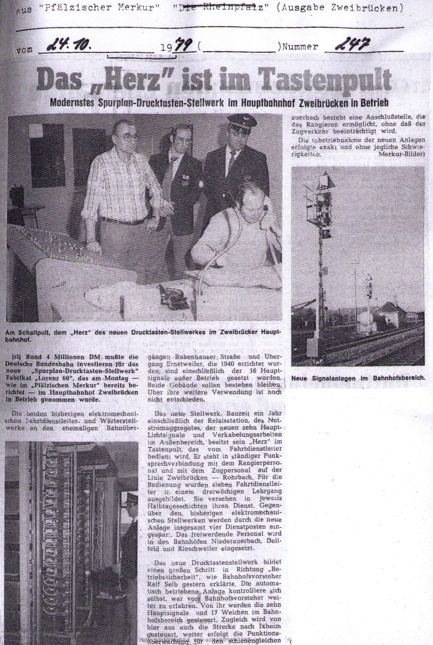 22.10.1979 Inbetriebnahme Dr Stellwerk Zweibrücken (Lorenz) Stw Zf. (24.10.1979 Das "Herz" ist im Tastenpult, Pfälzischer Merkur)