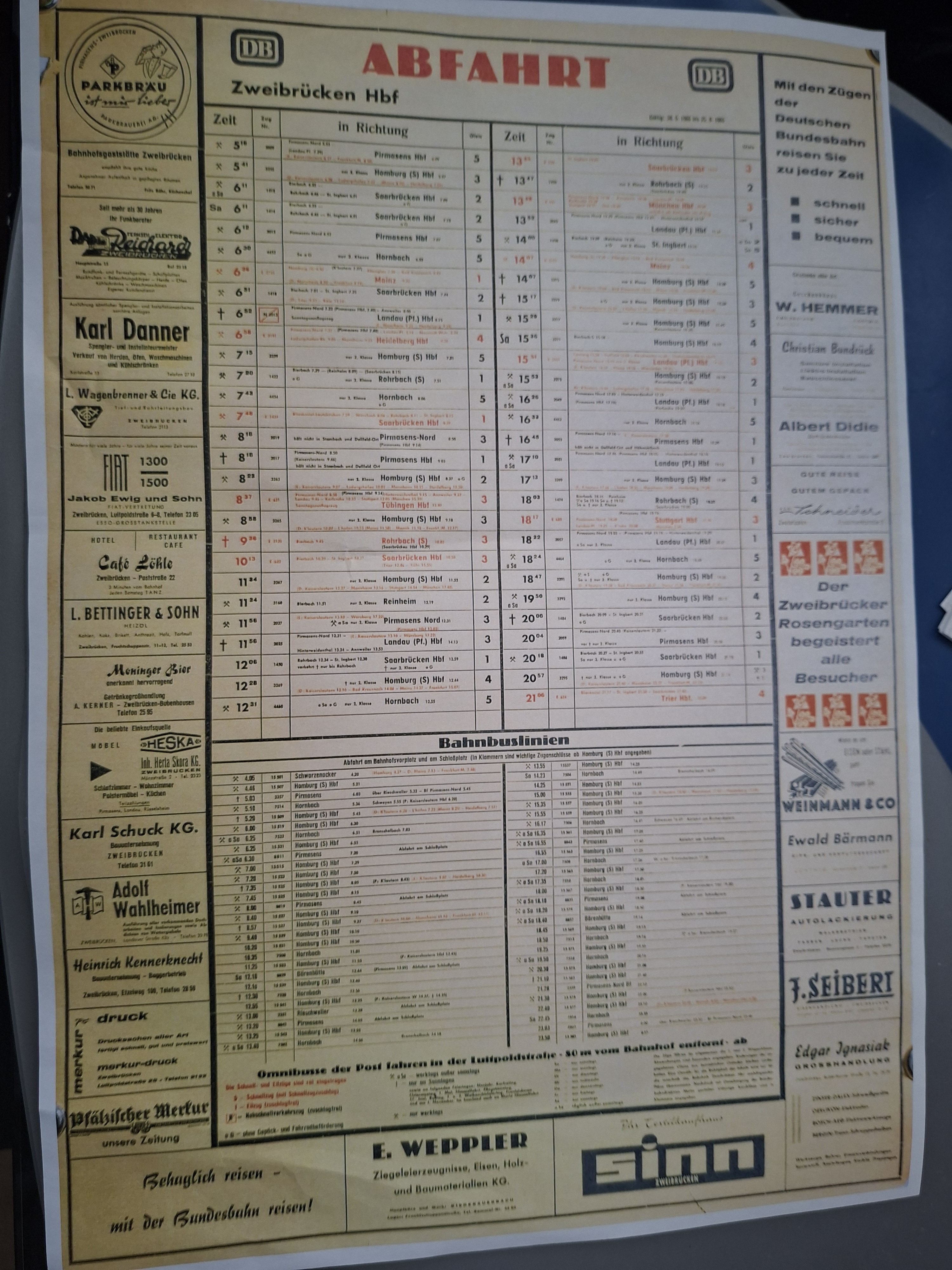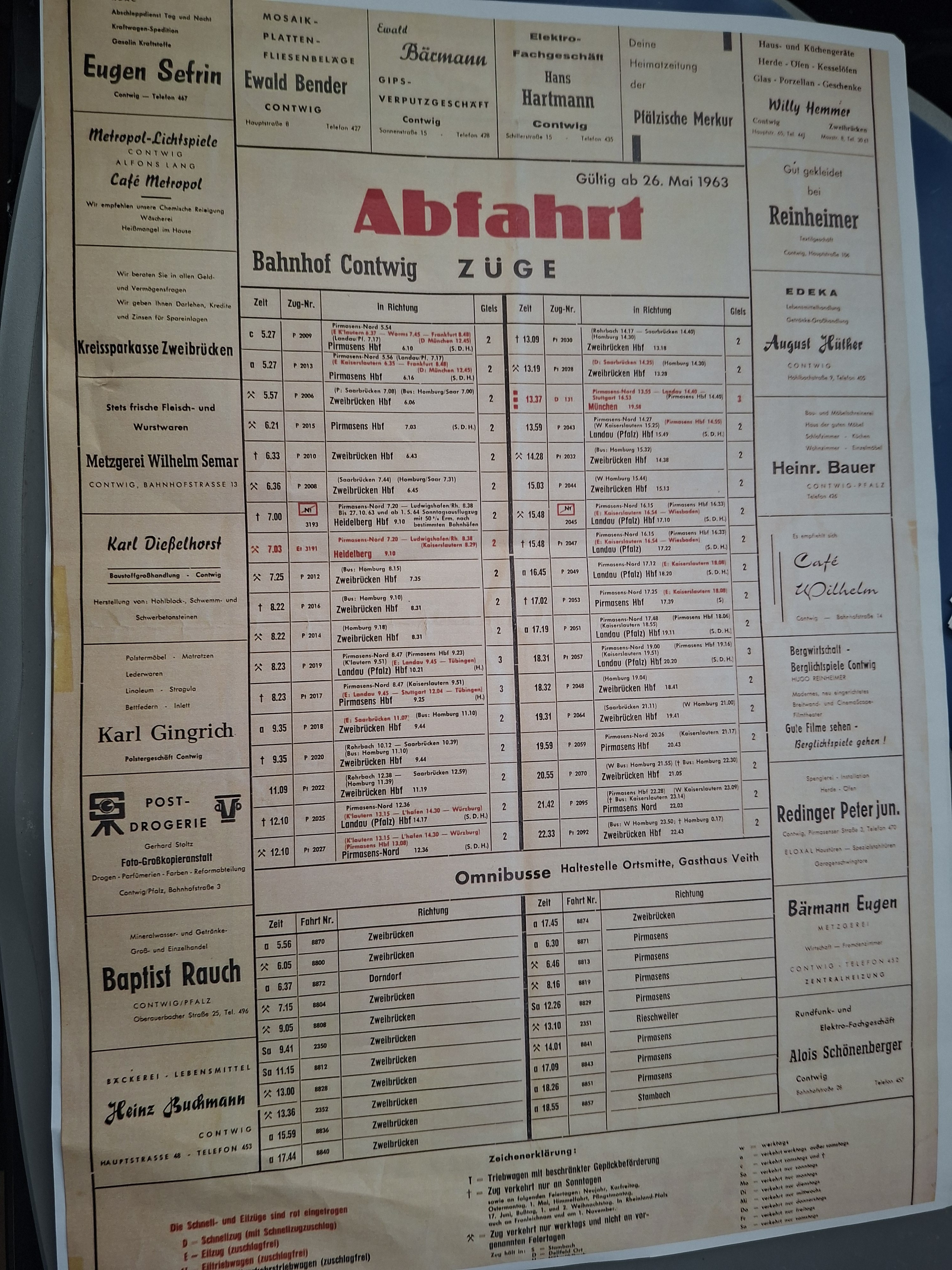 Fahrpläne ZW Hbf 1965, Contwig 1963