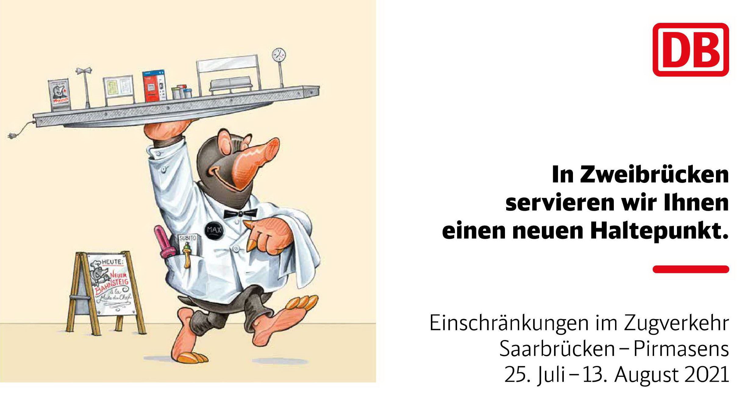 27.07.2021 (Die Rheinpfalz) Im Bau: Der neue Bahnhaltepunkt Zweibrücken-Rosengarten Zum Artikel Schon nach zwei Tagen war der Hang abgetragen. Ende August war der Teil des Bahnsteigs auf der Seite des Gleises fertig: Zum Artikel mit Foto (nur R-plus)