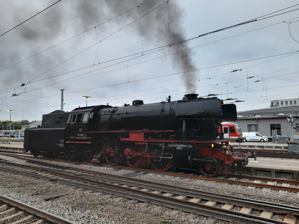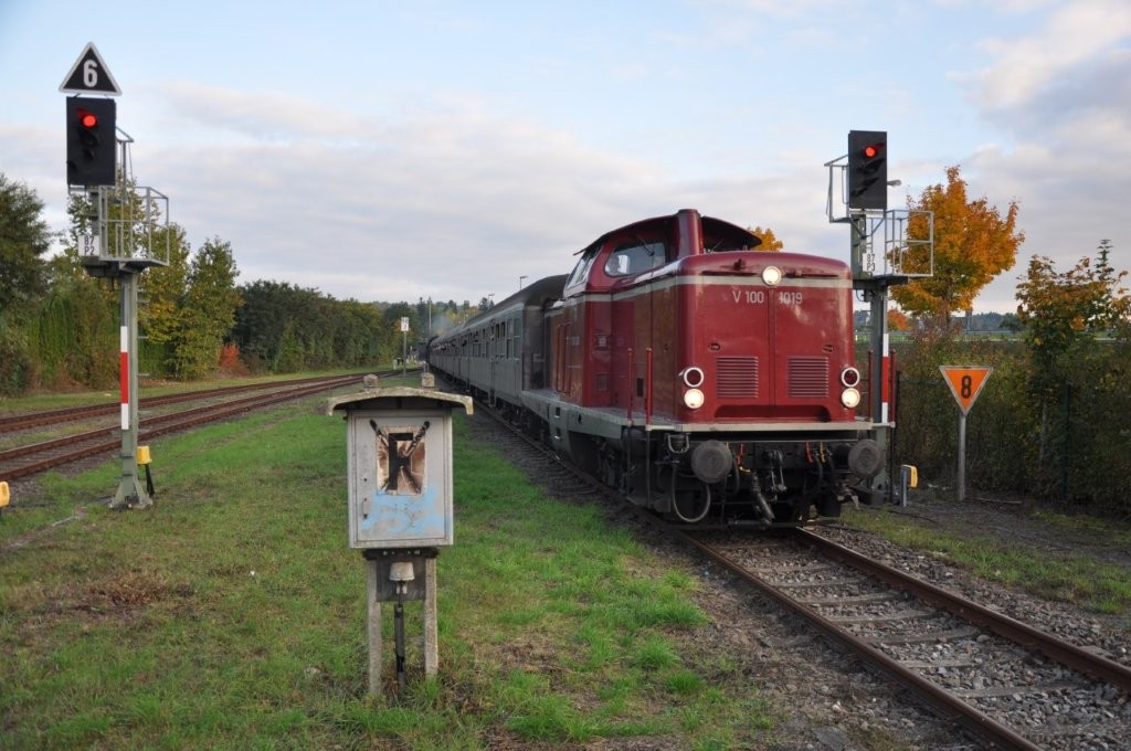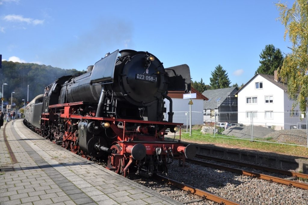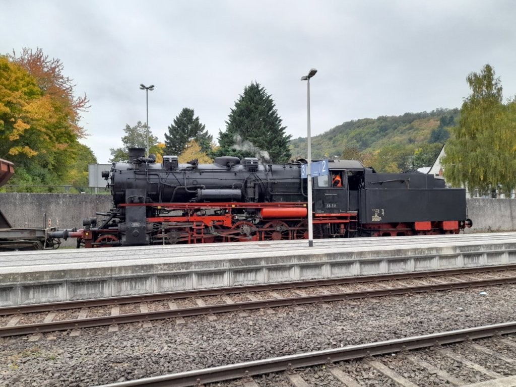 Dampfzüge zwischen Zweibrücken, Pirmasens und Landau Gezogen wurden die Züge von der D 023058-1. Angehängt waren 'Silberlineg'. Damit die Lok beim Richtungswechsel nicht umgesetzt werden muss, wurde die Diesellok V 100 1019-1 angehängt.