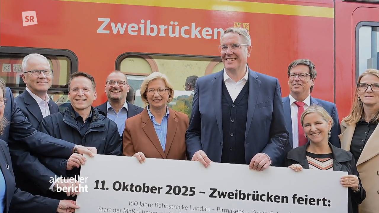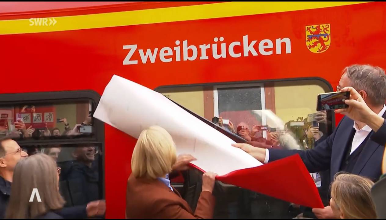 150 Jahre Bahnstrecke Zweibrücken - Landau und Reaktivierung Homburg - Zweibrücken Fahrzeugtaufe: Beschriftung "Zweibrücken" auf S-Bahn-Triebwagen 425 319-1 Fotos: Screeenshots SR bzw. SWR