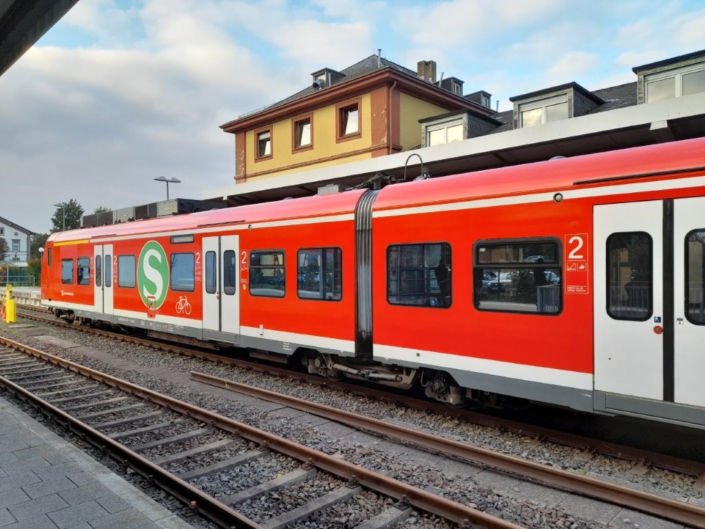 Fahrzeugtaufe: Beschriftung "Zweibrücken" auf S-Bahn-Triebwagen 425 319-1